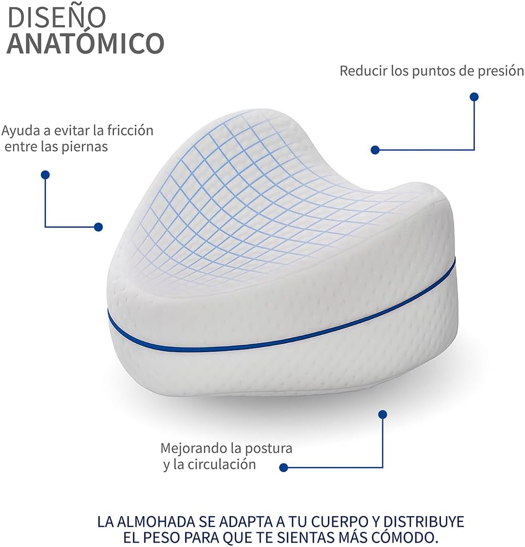 Su forma curva ergonómica se adapta perfectamente entre las piernas, manteniéndolas en la posición correcta durante toda la noche. Esto ayuda a alinear la columna, reducir la tensión en la espalda baja, caderas, rodillas y mejorar la circulación.
